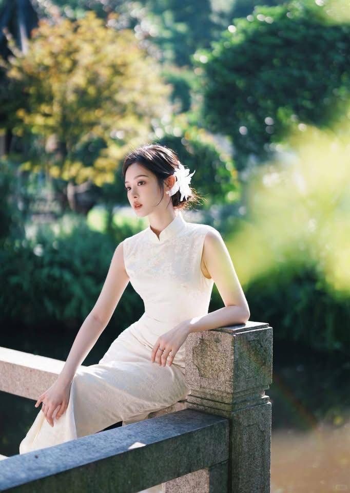 • Vườn Lưu Viên – Chuyết Chính Viên: Không gian vườn cổ mang đậm triết lý phương Đông, tôn lên nét mềm mại và sang trọng của sườn xám.