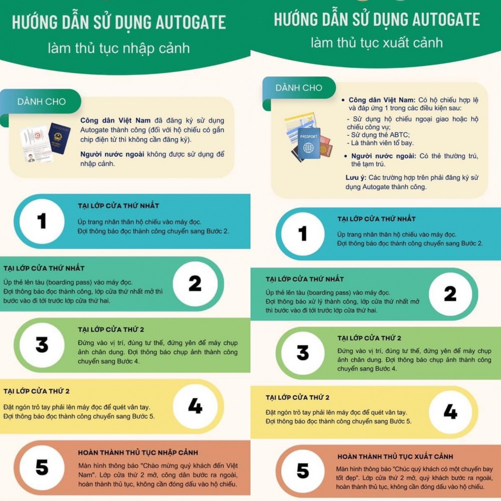 Trong những năm gần đây, việc ứng dụng công nghệ hiện đại vào thủ tục xuất nhập cảnh đã giúp hành khách tiết kiệm đáng kể thời gian chờ đợi tại sân bay. Thay vì phải xếp hàng dài chờ kiểm tra thủ công, nay bạn hoàn toàn có thể sử dụng cổng kiểm soát tự động (Autogate) tại các sân bay quốc tế lớn của Việt Nam. Đây được xem là bước tiến quan trọng, góp phần nâng cao trải nghiệm di chuyển của hành khách trong và ngoài nước.
