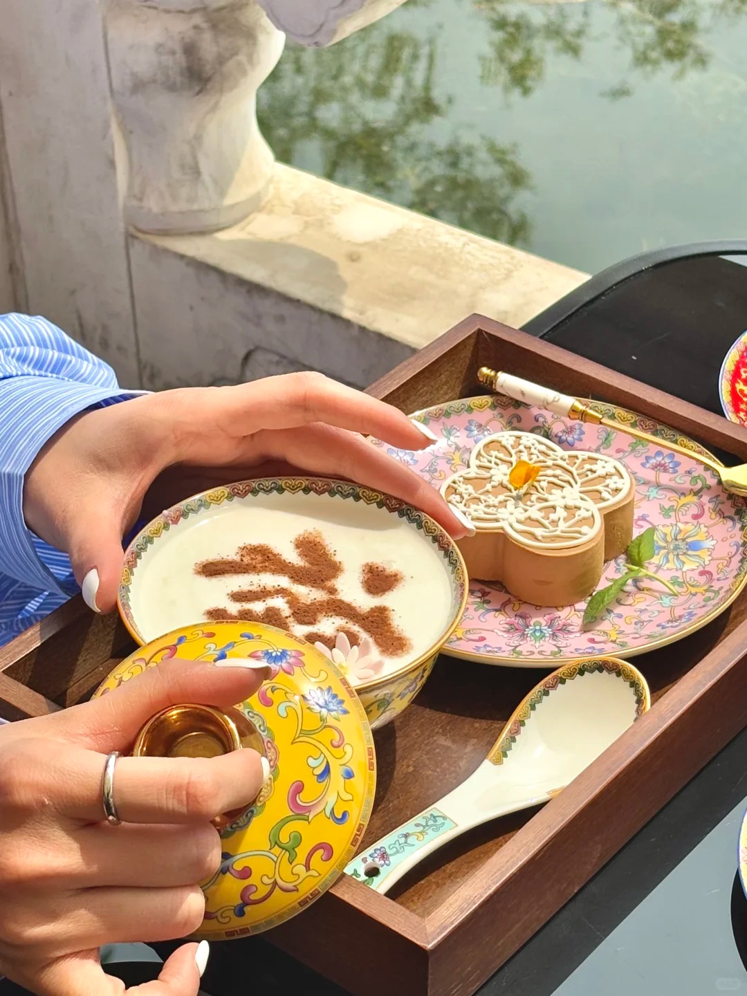 Các quán trà quanh hồ được thiết kế mang hơi thở kiến trúc cổ. Bàn ghế gỗ, cửa sổ rộng, lan can hướng hồ tạo cảm giác thoáng đãng. Nhiều quán còn phục vụ những set trà chiều gồm bánh ngọt, hoa quả và các loại trà hoa nổi tiếng như hoa nhài, hoa cúc hay ô long. Buổi chiều là thời điểm đẹp nhất – ánh nắng nhẹ phản chiếu lên mặt hồ, tạo nên khung cảnh bình yên khó quên.