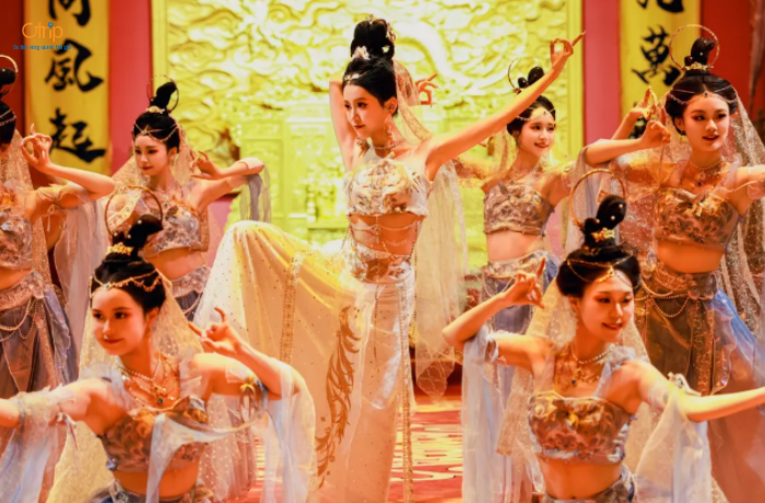 Ngay khi bước vào, du khách sẽ được chào đón bởi cảnh quan được phục dựng dựa trên kiến trúc cung điện cổ Trung Hoa. Từ ánh đèn, nhạc nền, trang phục đến lễ nghi đón tiếp đều được thiết kế theo phong cách cổ trang, tạo cảm giác như đang bước vào một buổi yến tiệc thời hoàng gia.